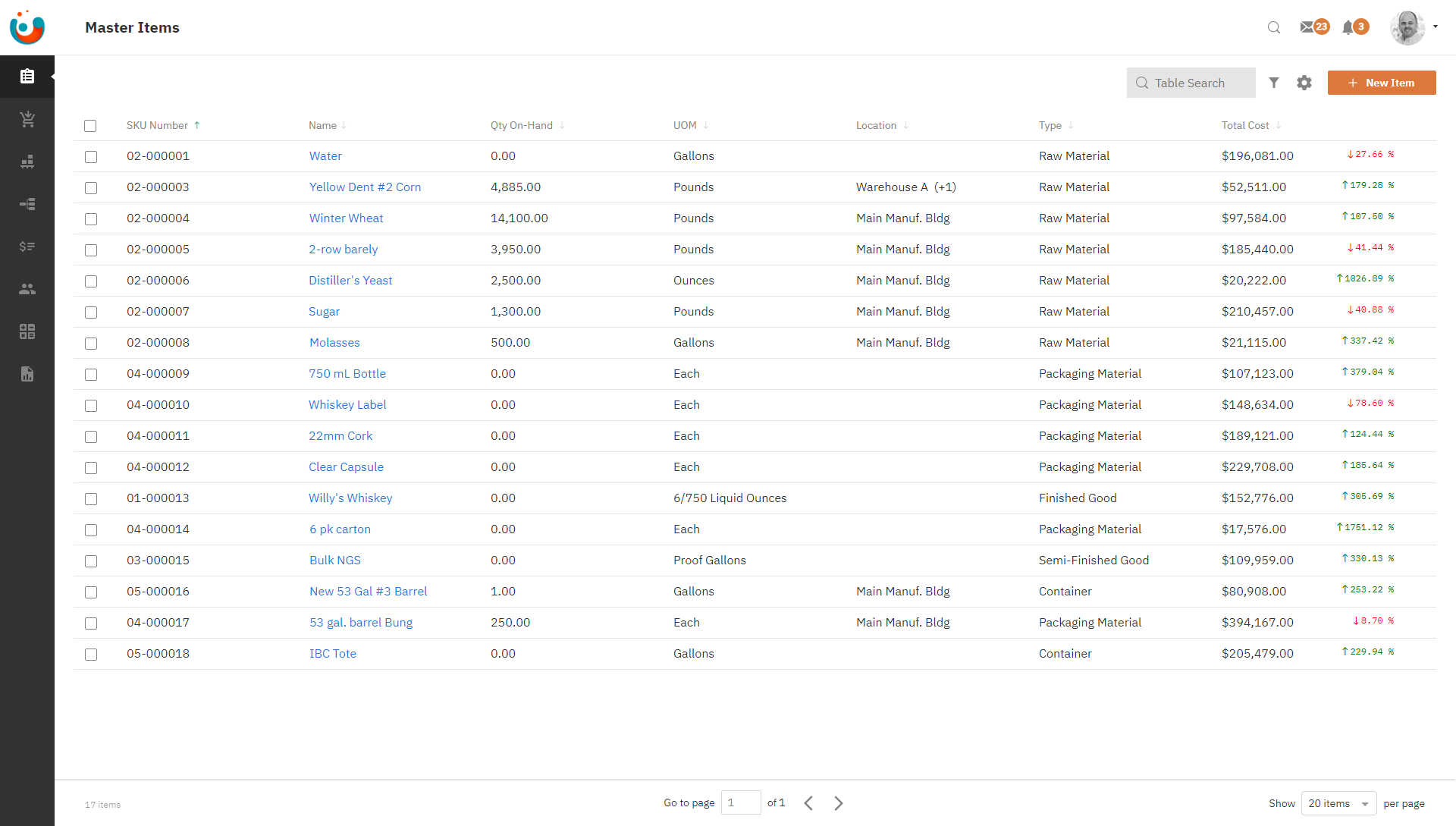 Track and manage all raw packaging materials and containers needed to produce your finished and semi-finished goods.